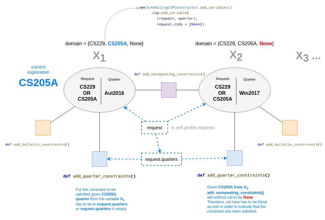 In this problem, you will leverage our CSP solver for the problem of course scheduling.